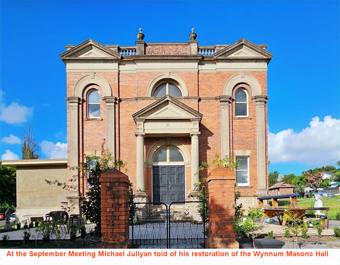 September 18 2025 Michael Jullyan "Restoration of the Masonic Lodge Hall" The Masonic Hall was built on Tingal Road in